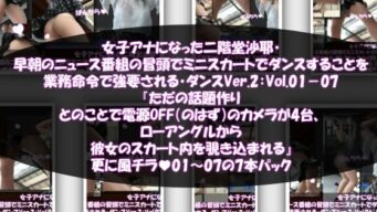 同人 【d_694801】女子アナになった二階堂沙耶・早朝のニュース番組の冒頭でミニスカートでダンスすることを業務命令で強要される・ダンスVer.2:Vol.01〜07『ただの話題作りとのことで電源OFF(のはず)のカメラが4台、ローアングルから彼女のスカート内を覗き込むように設置されている:PV01〜07までの7本セット総集編!』【Libido-Labo】